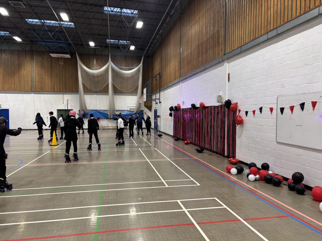 What a way to end the half term – Skate and Celebrate was our latest positive reward event – open to all students who had achieved over 95% attendance and zero negative points in the previous half term. The event was put together by Ms Iqbal and Ms Roach and was a fantastic community event – delicious food, roller disco, giant games and a raffle – much fun was had by all who attended.